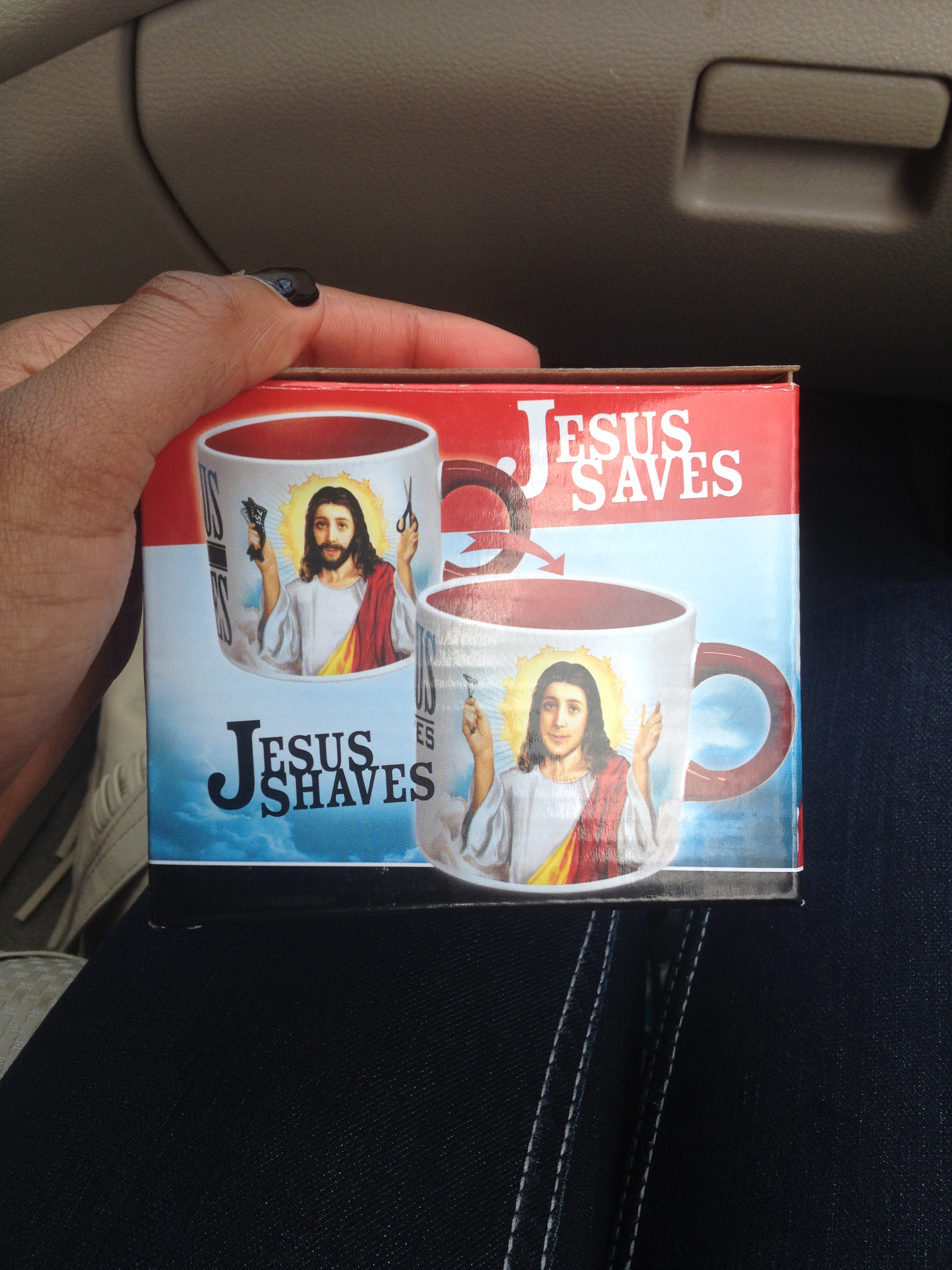 Side note:  Despite how hard my parents worked to keep me in church (CCD, etc),  I am still a heathen, as well evidenced by my “Jesus Shaves” mug.